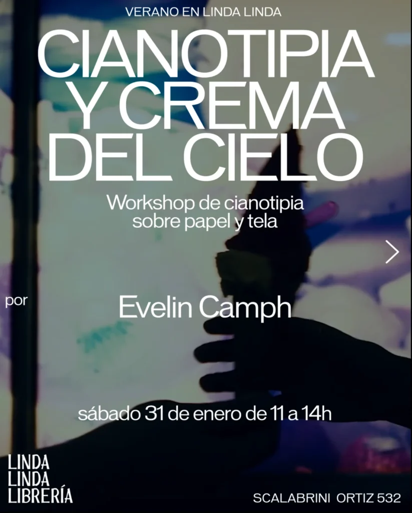 Workshop de cianotipia sobre papel y tela dictado por Evelin Camph.