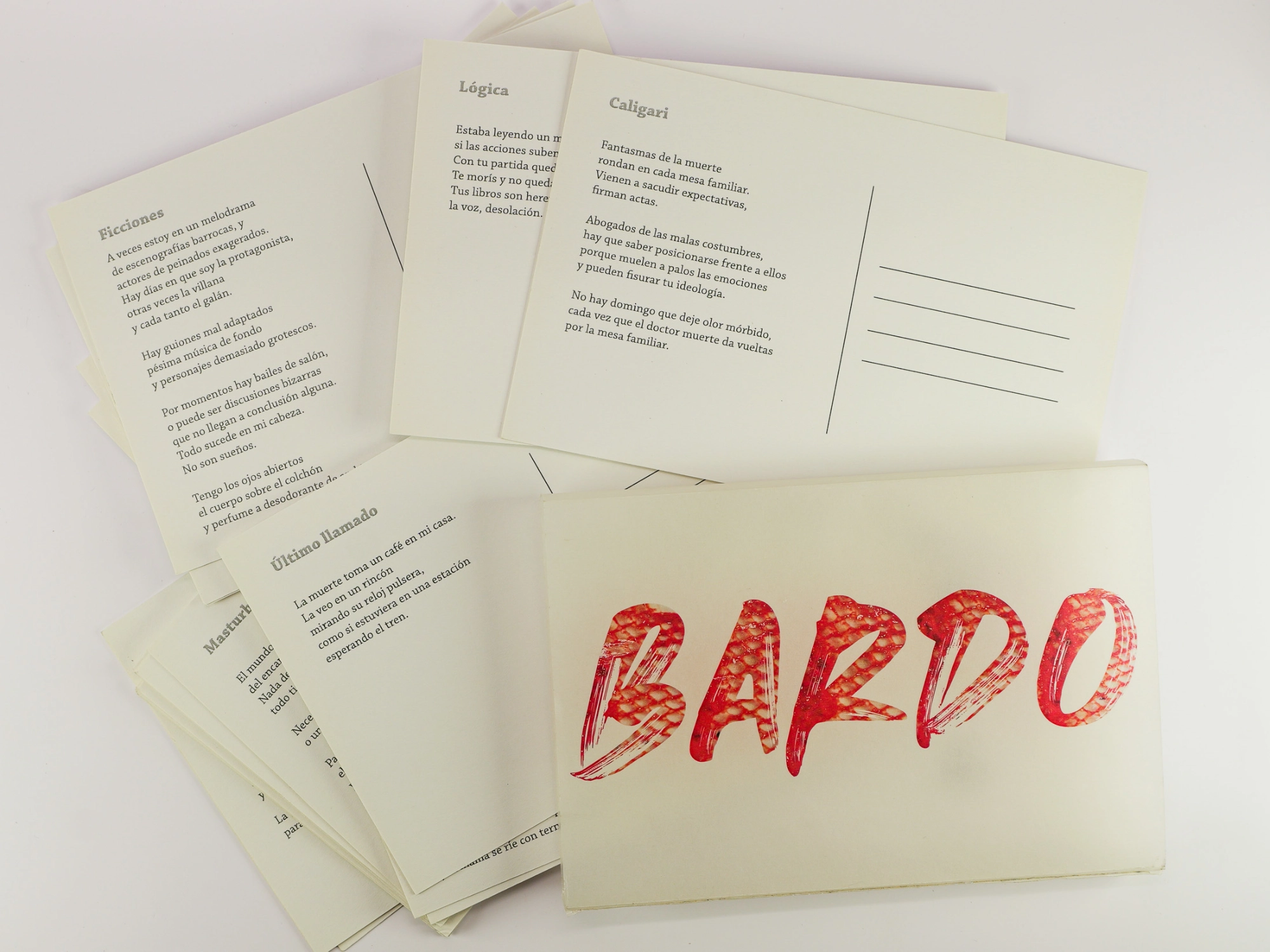 Las postales son una creación realizada en conjunto con Adela Rafaghelli París, en contexto de pandemia. Ella desde Barcelona, en base a los poemas de Laura, realizó ilustraciones con elementos como cartones, fragmentos de redes, acrílicos, todo lo que veía que le generara inspiración. Entre videollamadas, audios de whatsapp y mails, fueron construyendo lo que que Juliana Celle y Agustina Amar editan y materializan en esta publicación.