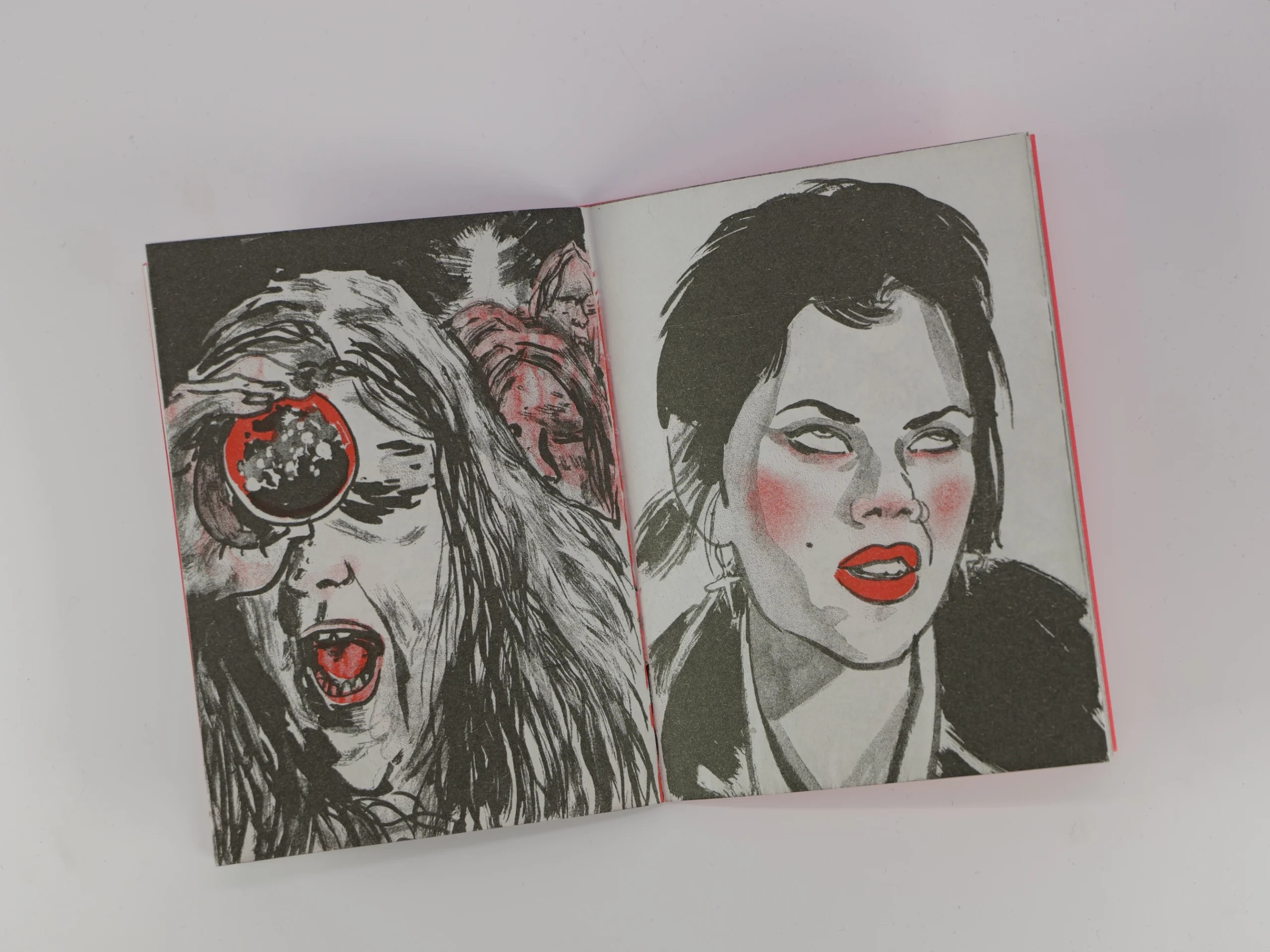 Este fanzine ilustrado por Luis Echavarría incluye 19 brujas de diferentes películas. En orden de aparición: