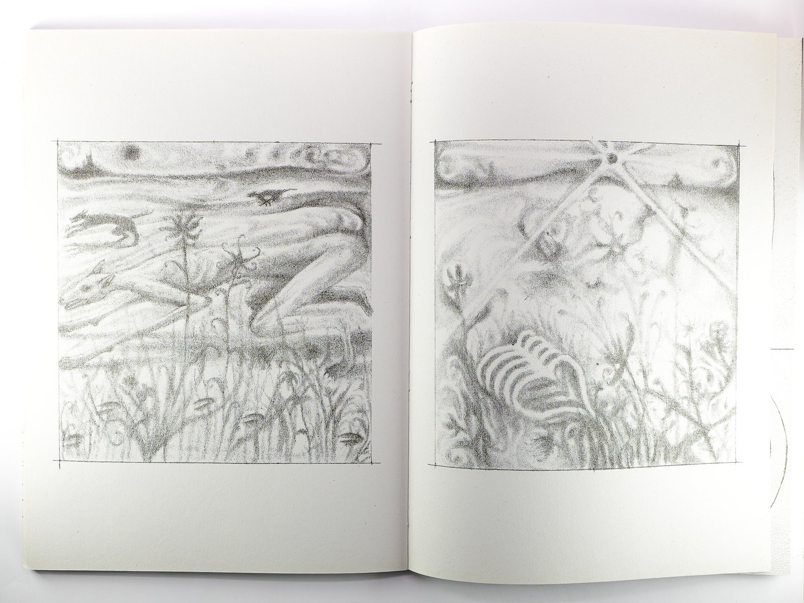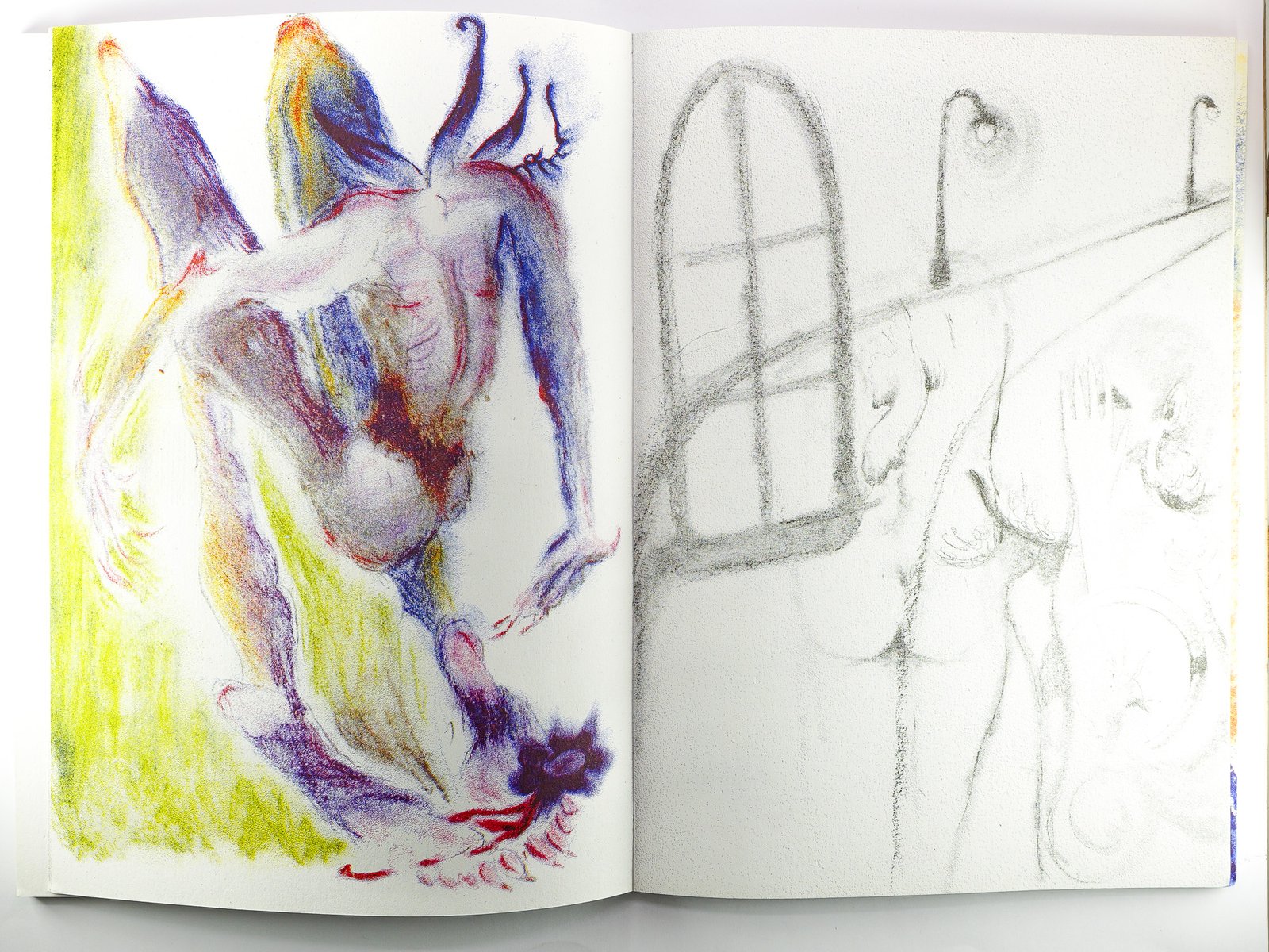Egregor entreteje dibujos, acuarelas, bocetos y anotaciones del dúo artístico, recopilando procesos gestativos de su obra escultórica y pictórica de los últimos años.