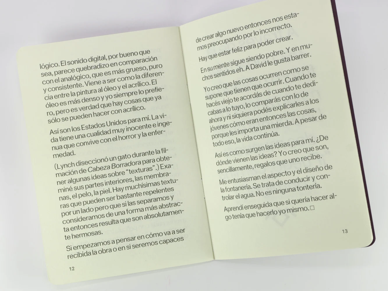 Notas de David Lynch sobre cine, pintura, vida artística, plomería y campo unificado. Incluye una carta a sus padres.