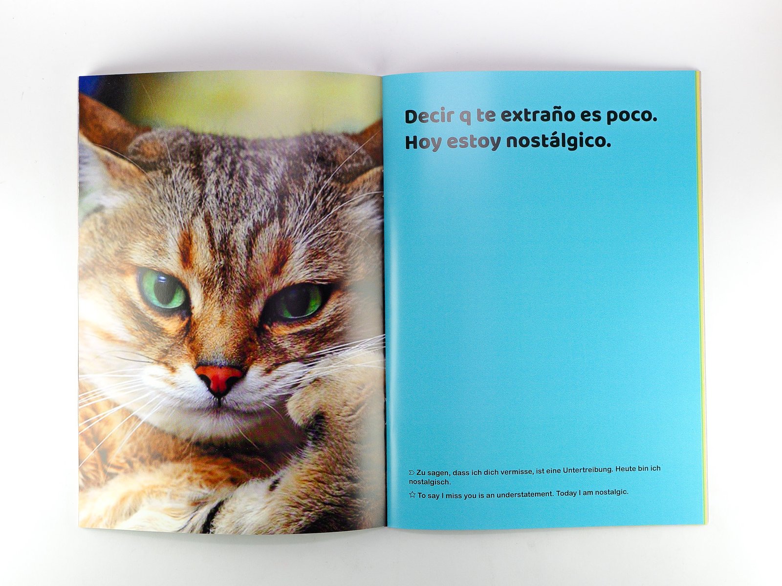 “Cuando murió nuestro gato, fue la primera vez que vi llorar a mi papá. Desde que me mudé a Berlín, él comenzó un ida y vuelta de emails conmigo donde me expresaba sentimientos y pensamientos muy personales. Casi todos los correos venían con un archivo adjunto: la foto de un gatito.”