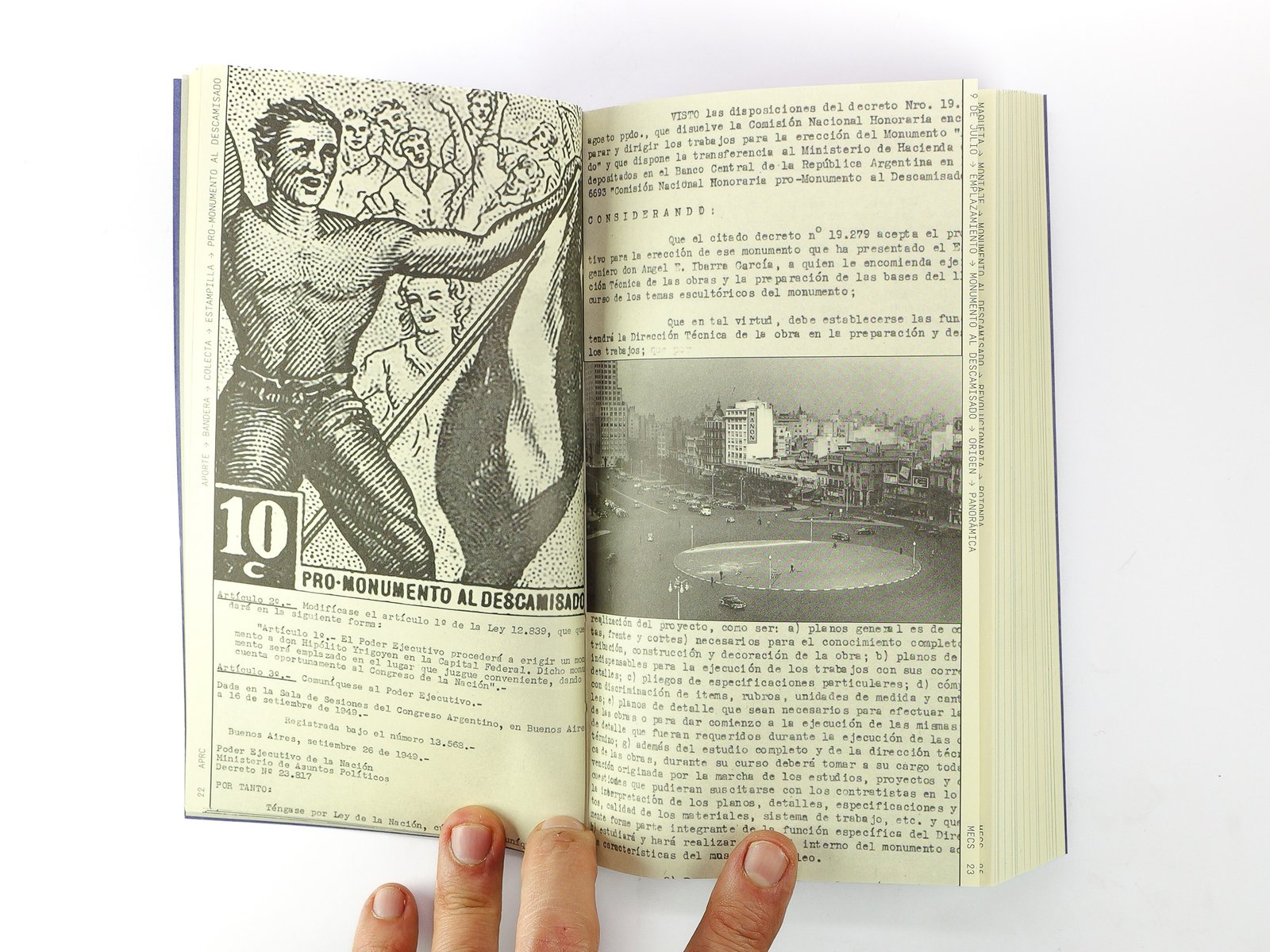 Movimientos de un Monumento (del Descamisado a Eva Perón) se centra en la historia trunca de la construcción de este monumento. El libro surje a partir de una investigación a cargo de Rodrigo Claramonte desarrollada entre 2016 y 2022, con mas de 12.000 documentos relevados. El resultado es un archivo y testimonio de esta historia inacabada.