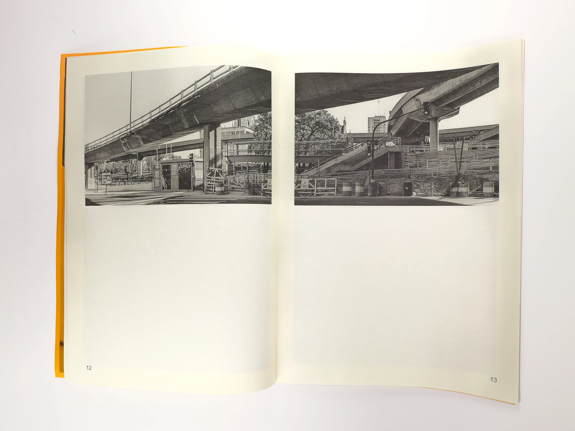 En este contexto el trabajo de Mariela Bobba se plantea como un registro fotográfico de uno de estos estratos, que extiende su influencia a los espacios circundantes. Fija la mirada en este conjunto de estructuras básicas (pilares) que soportan circuitos de autopistas elevadas y establecen un área de tránsito exclusivamente vehicular superpuesta a la ciudad, que a su vez funda un territorio intermedio en la misma.
