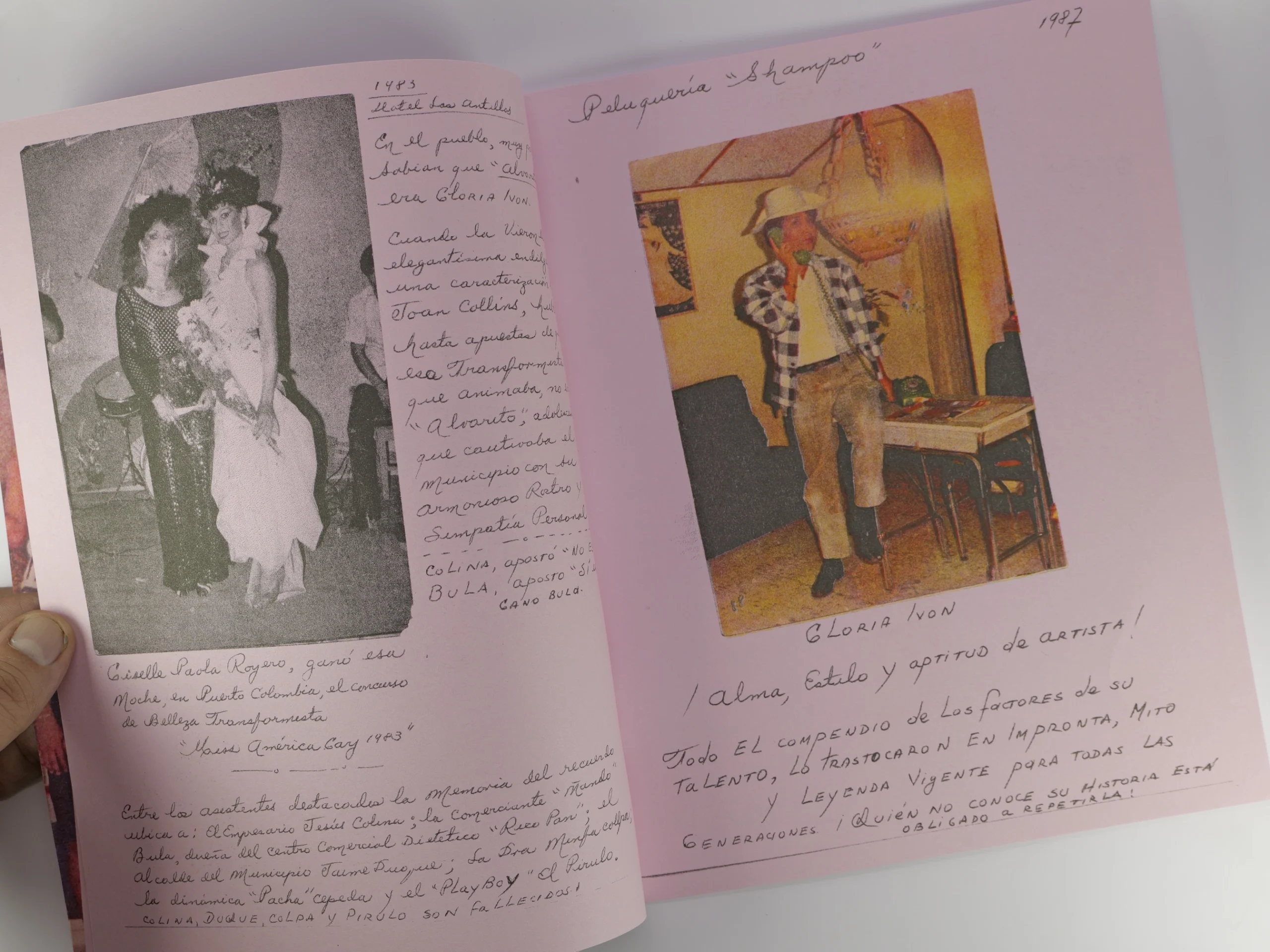 A través del archivo de Gloria Ivón, compuesto de más de medio millar de fotografías, fragmentos de periódicos y revistas, se devela la aclamada presentadora, gestora cultural, intérprete teatral, performer pionera, relacionista pública y prestidigitadora de la escena, convocada para la conducción de concursos de belleza travestis y heterosexuales y eventos de salas de estética. Gloria Ivón explicó en una entrevista a Massimiliano Carta, miembro del colectivo y del grupo: “Yo pensaba que tenía hormonas femeninas en la mente. Yo era un transexual mental”. Estas imágenes dan cuenta de su papel en la génesis de los espectáculos gays, travestis y transformistas en Colombia.